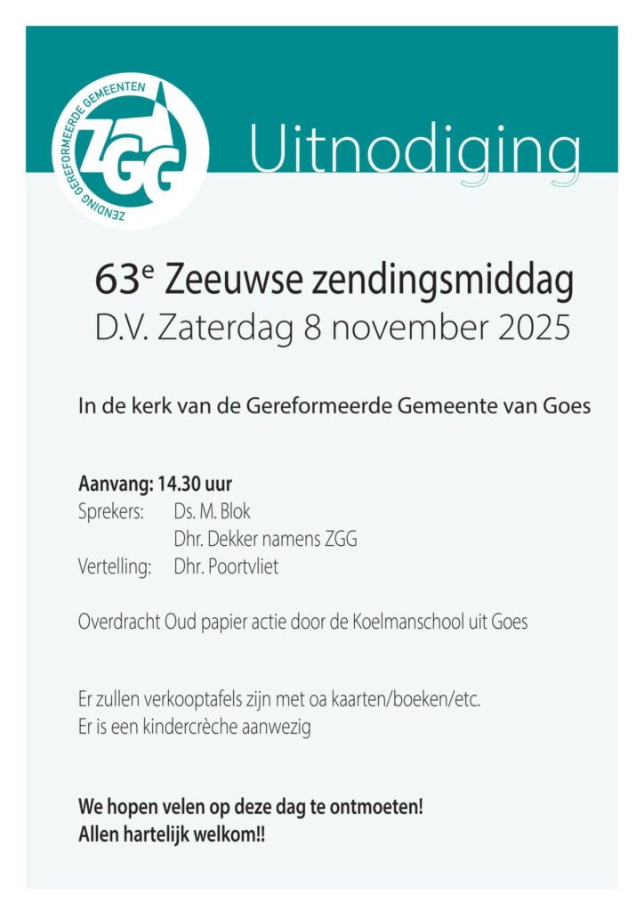D.V. zaterdag 8 november 2025 is er de 63ste Zeeuwse en Flakkeese zendingsmiddag.